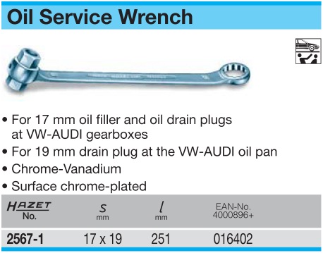 HAZET Ключ для обслуживания масленых систем 17х19