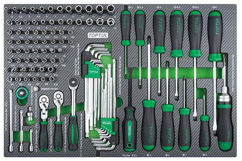 Приобрести Набор головок 1/4" с аксессуарами и отверток 114 предметов в мягком ложементе (D) TOPTUL GEDB431 от компании Toptul (Тайвань) из раздела Комбинированные наборы по цене 31 289 рублей.