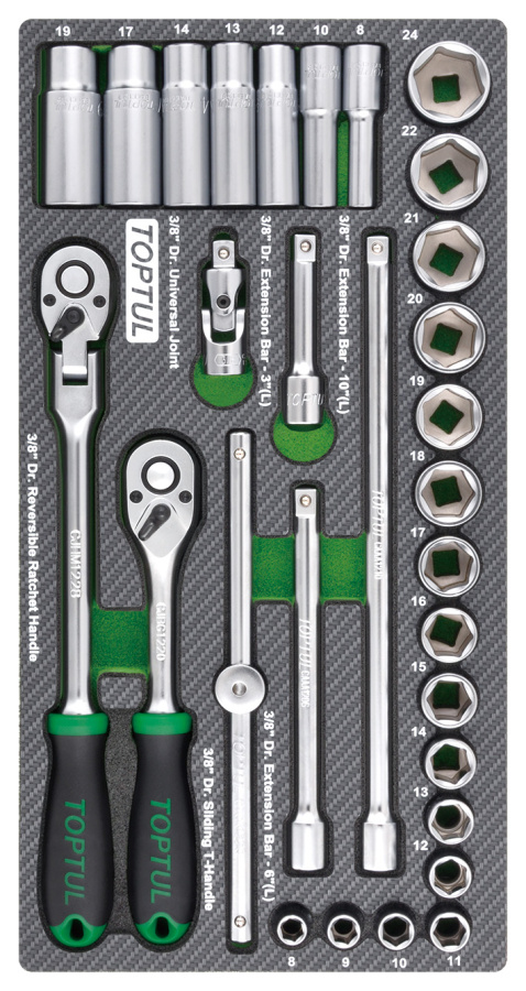 Набор головок и аксессуаров 3/8", 30 пр. в мягком ложементе TOPTUL GEA3005 купить в Красноярске и других городах России