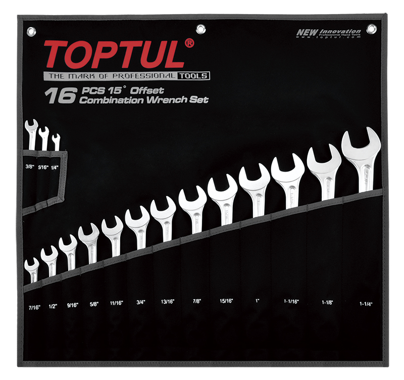 Набор ключей комбинированных дюймовых 1/4"-1-1/4", 16 предметов на полотне TOPTUL GPBX1601 купить в Красноярске и других городах России