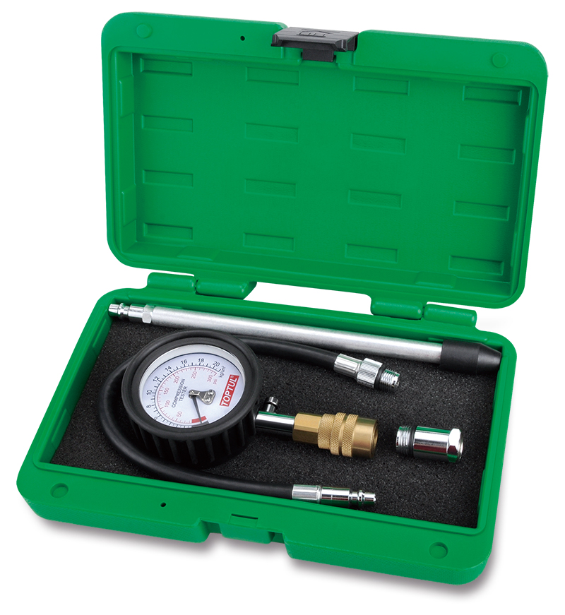 Компрессометр бензиновый JGAI0402 Toptul – профессиональное оборудование для проверки компрессии цилиндра при диагностике неисправных клапанов, поршневых колец, головок цилиндров, прокладок и др.