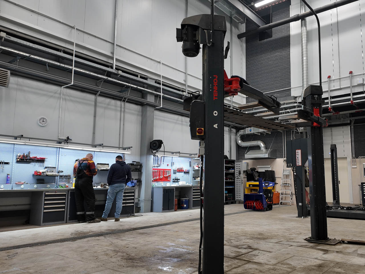 Участок по ремонту ТС был укомплектован надежными подъемниками EVERLIFT, обеспечивающими удобство и безопасность обслуживания техники.